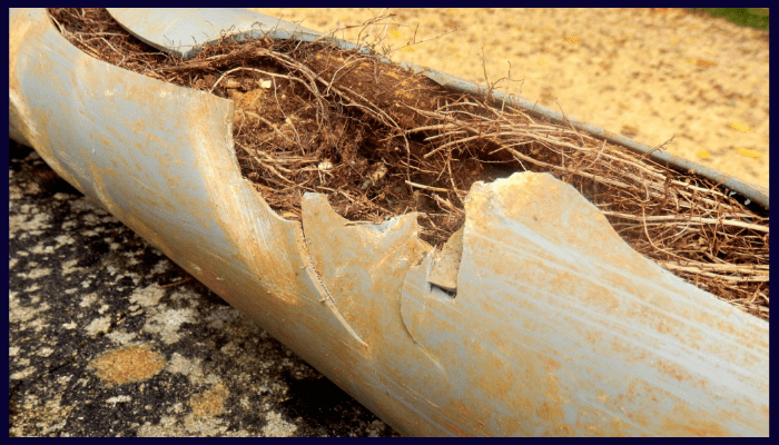 - Tree roots breaking into older clay sewer lines causing severe blockages.
